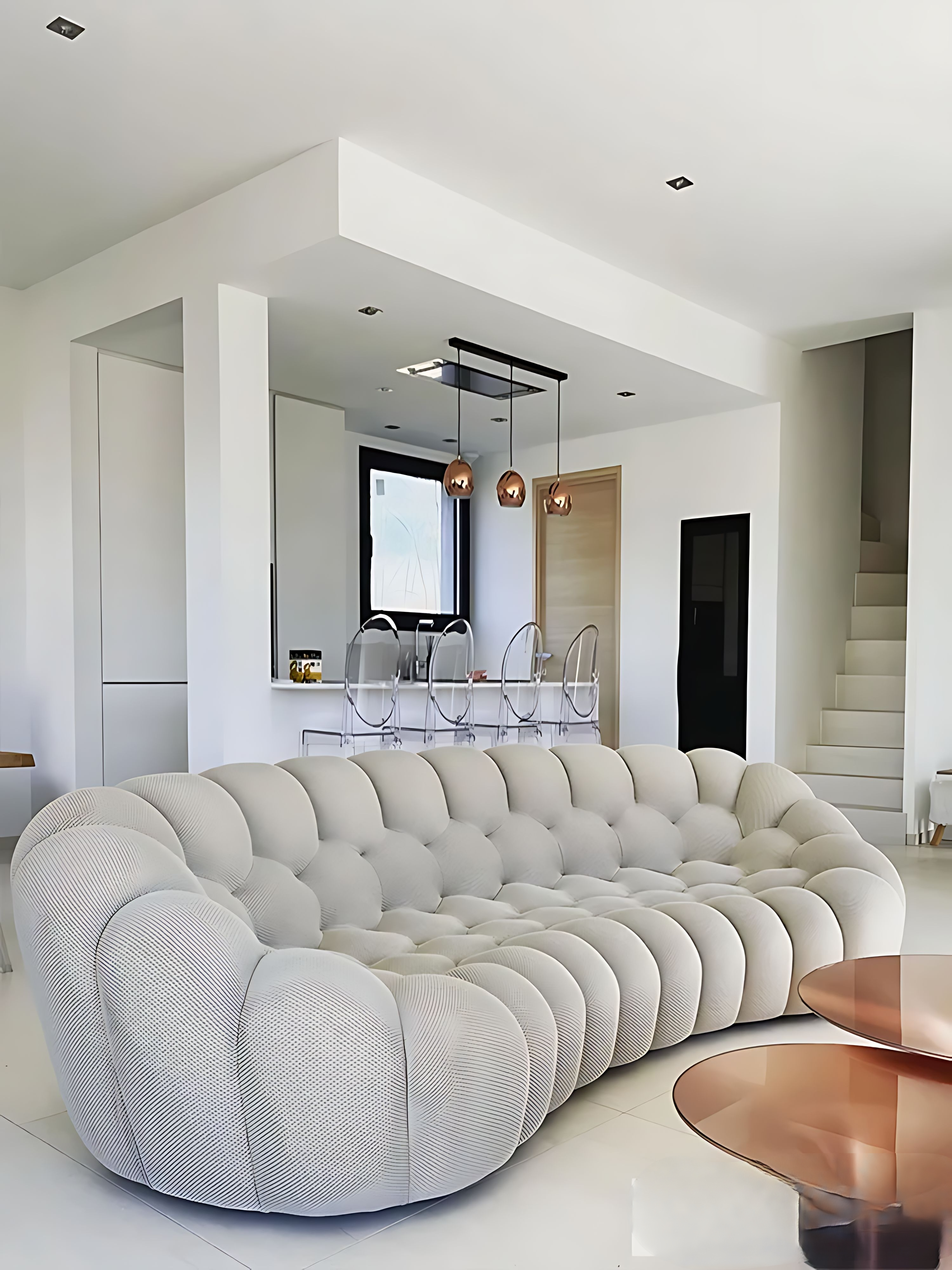 صُنعت أريكة الفقاعات بعناية فائقة باستخدام القطن العضوي. هذه المادة الفاخرة ليست مستدامة وصديقة للبيئة فحسب، بل تتميز أيضًا بسطح ناعم ومسامي ومتين. يضمن الملمس الطبيعي للقطن العضوي تجربة جلوس مريحة، ويضيف لمسة أنيقة إلى جمال الأريكة.
