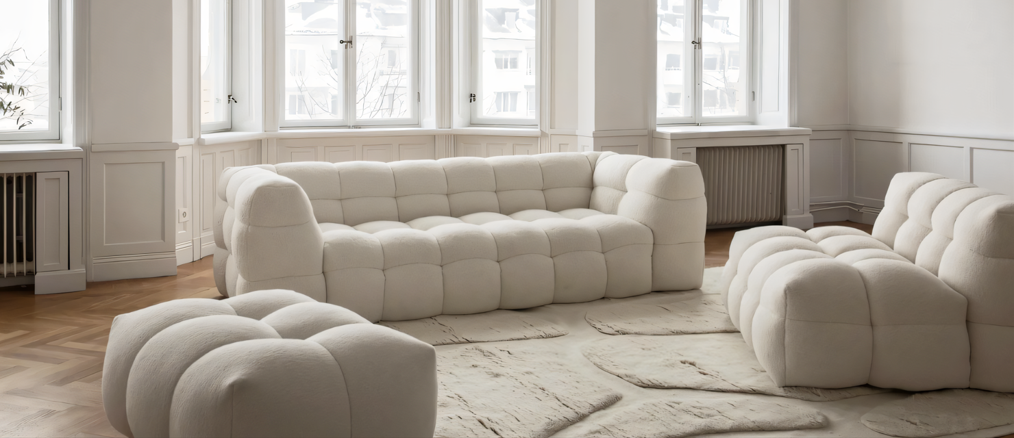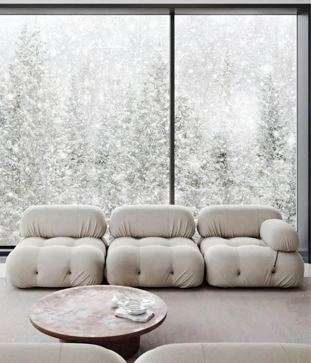 Obsahuje trendy pohovku Bailey, luxusní sametovou zakřivenou pohovku Gaia a ikonickou pohovku Camaleonda.