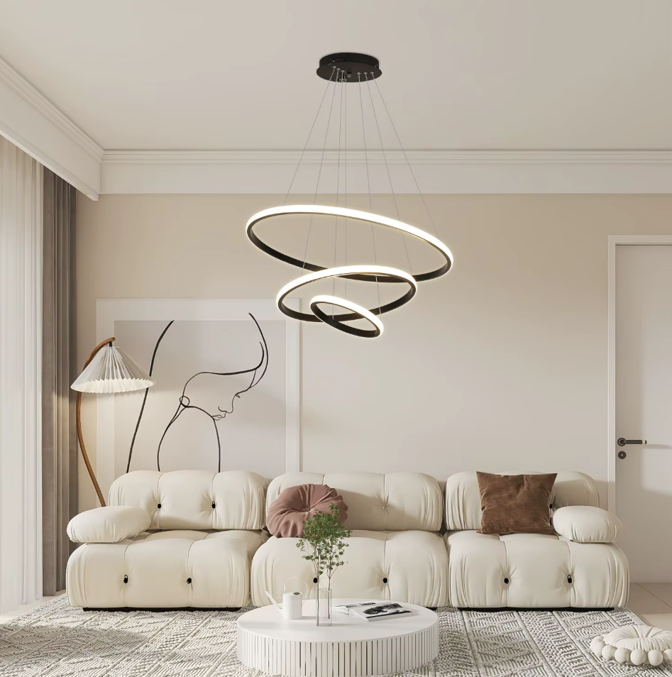 The Clarion’s flowing LED rings define sophistication in serene interiors.