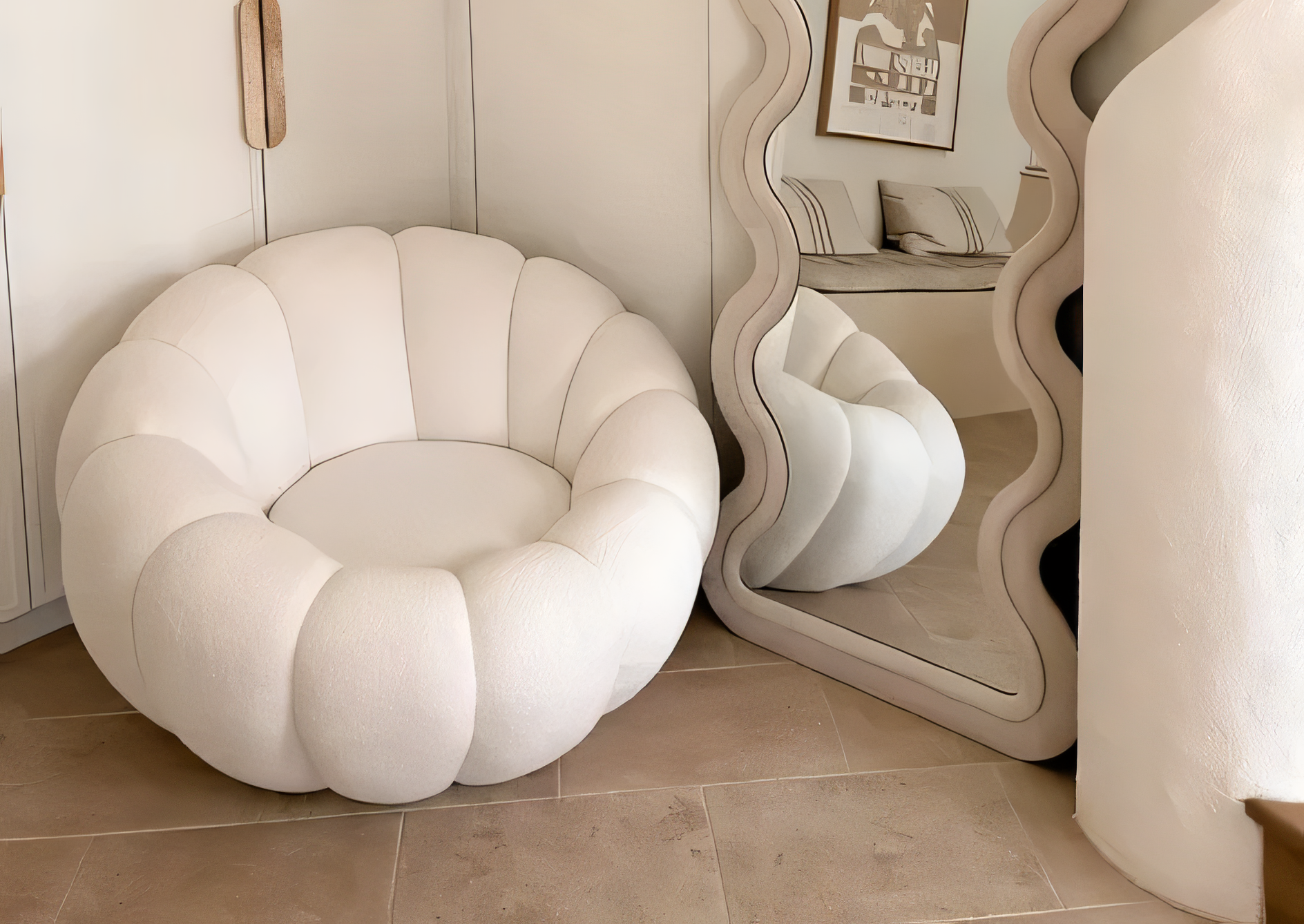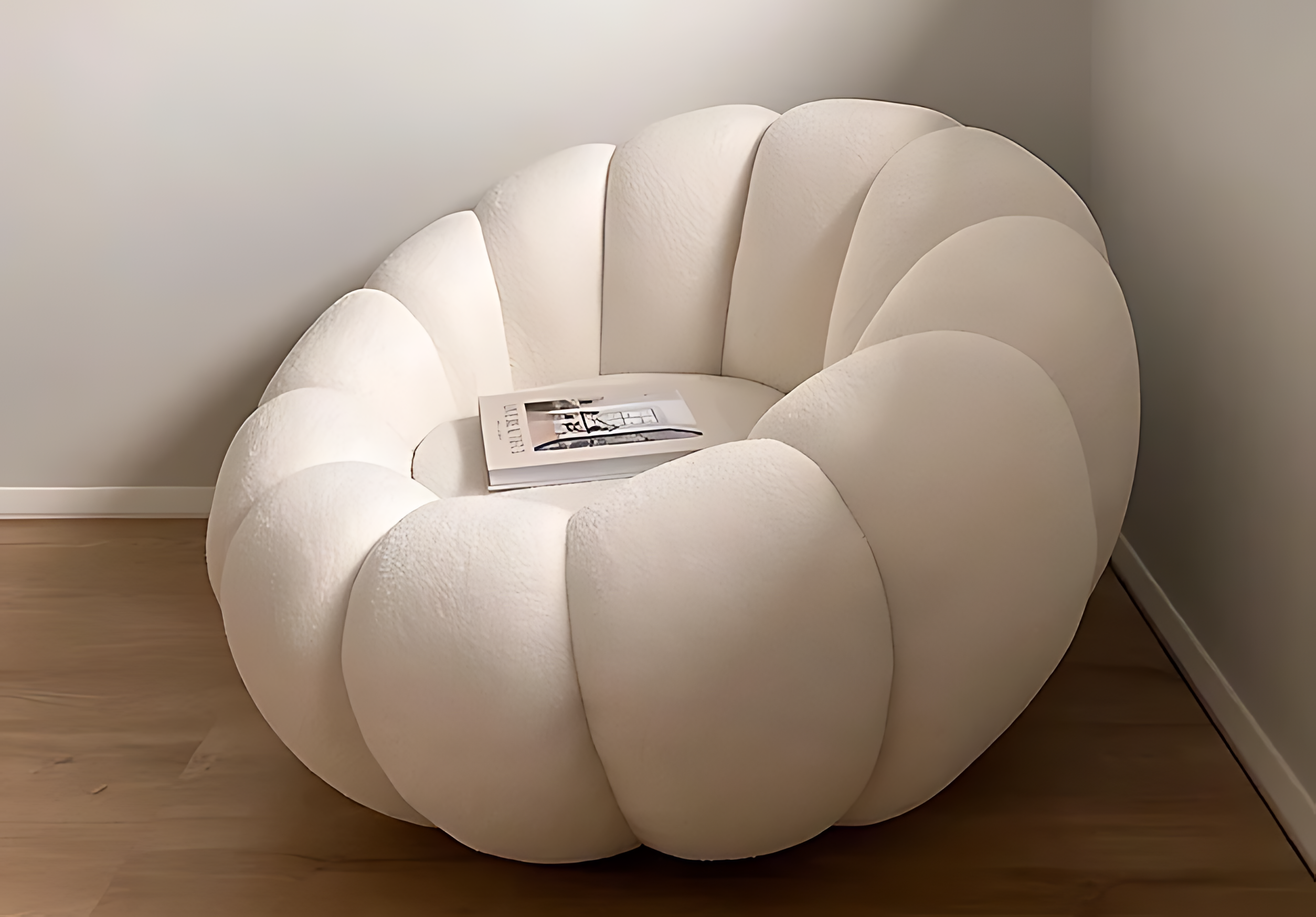 La Pumpkin Chair non solo soddisfa il desiderio di un'esperienza di seduta confortevole, ma funge anche da pezzo di fascia alta, migliorando l'estetica del tuo spazio abitativo.
