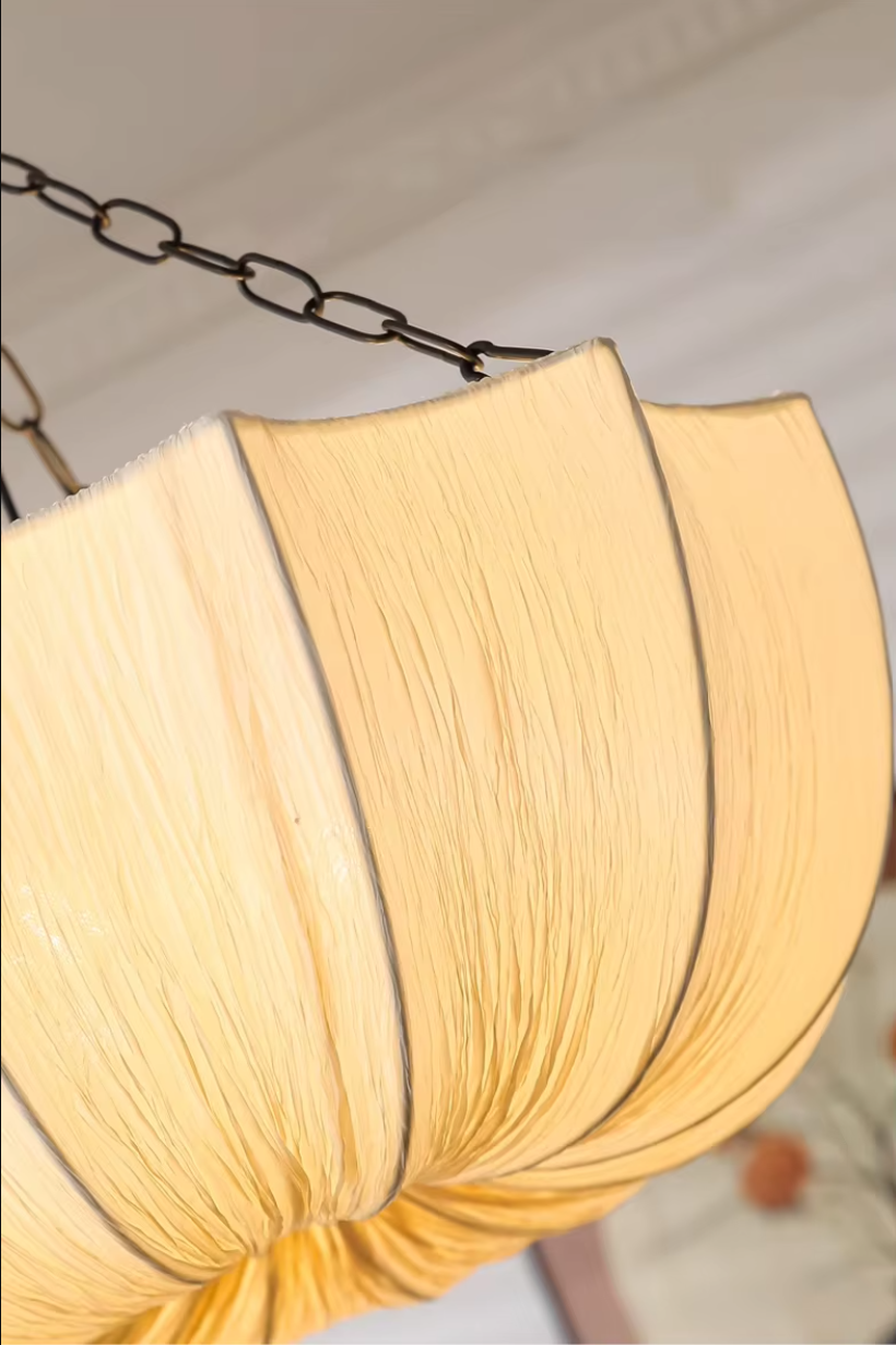 Soft Illumination: Fabric shade diffuses light gently, creating inviting and atmospheric interiors.