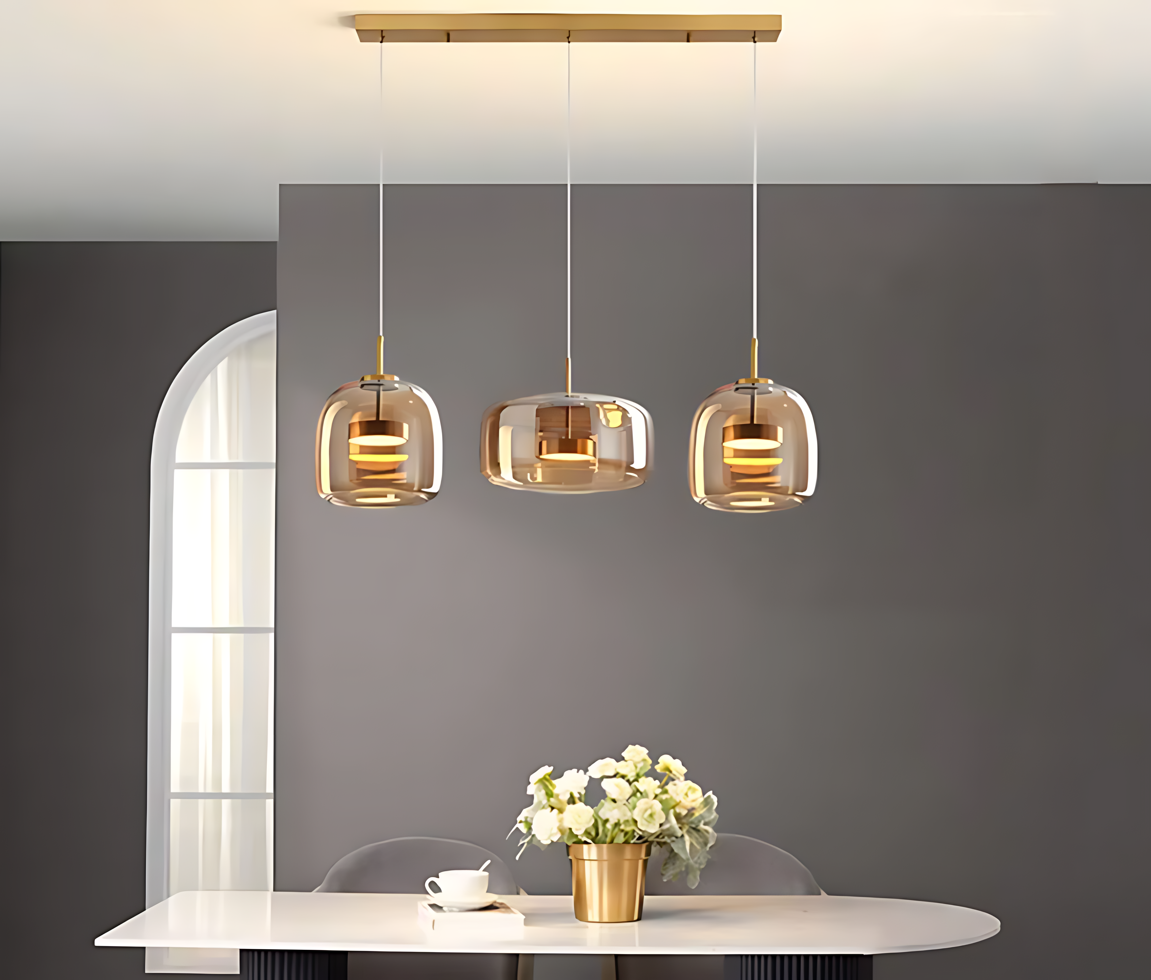 Pozdvihnite svoj priestor pomocou Vetro Trio Lux, výrazného kúsku osvetlenia, ktorý spája elegantné sklenené remeselné spracovanie s modernou sofistikovanosťou. Tieto závesné svietidlá, navrhnuté ako trio, vytvárajú teplú a príjemnú atmosféru a zároveň dodávajú vášmu interiéru nádych súčasného luxusu.