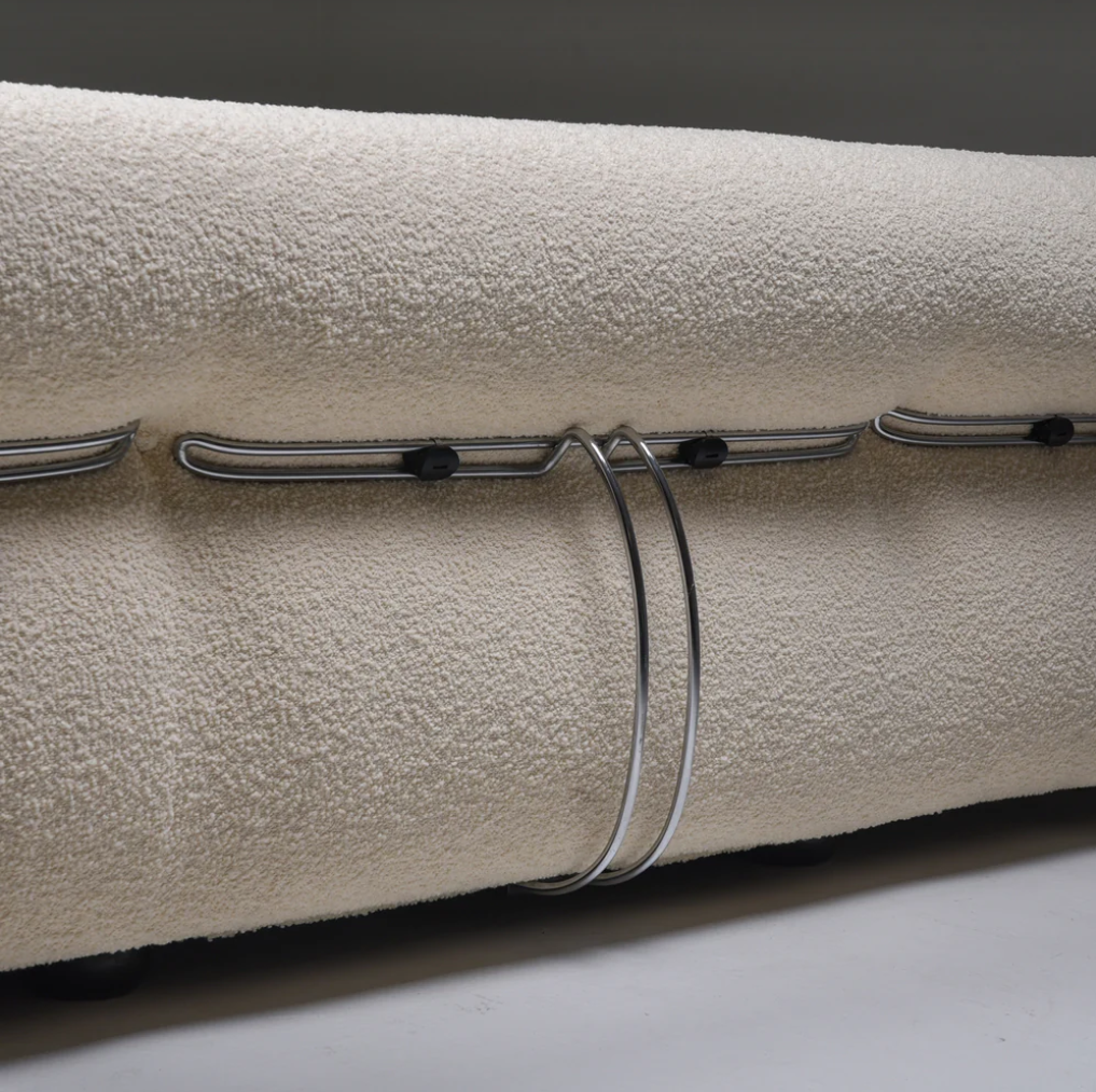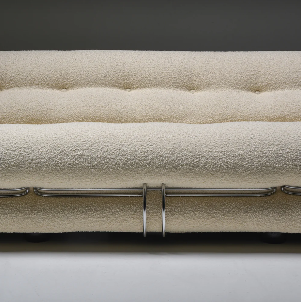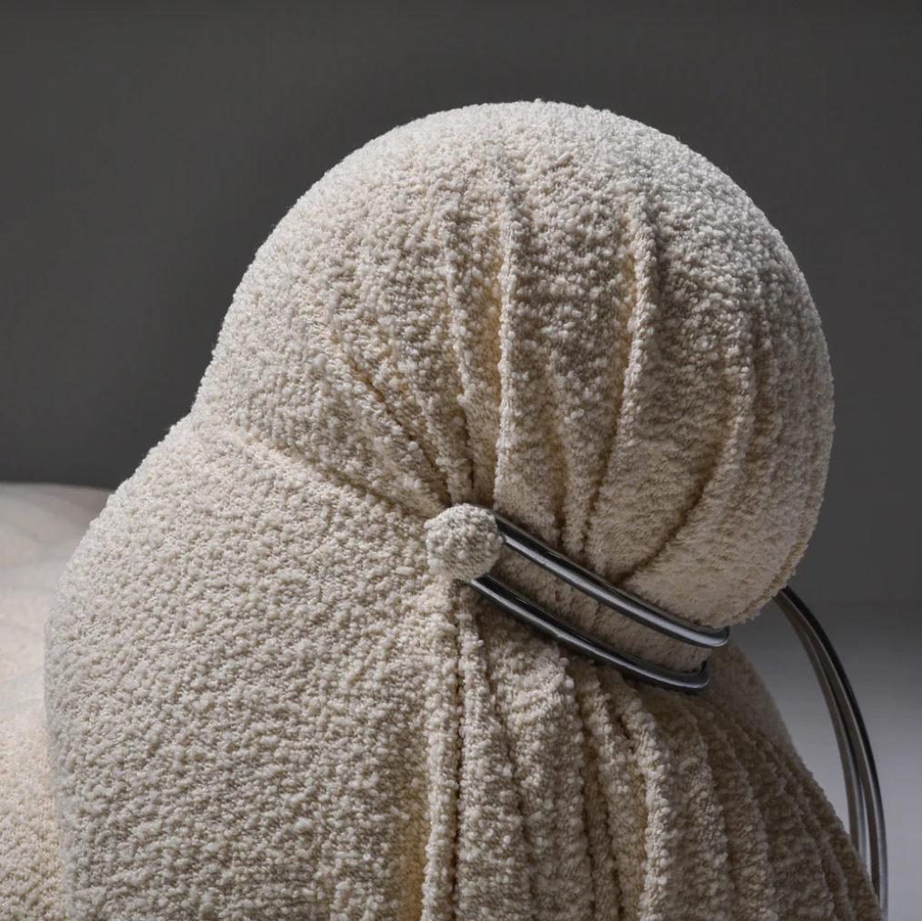 Son zamanlarda peluş bukle yün döşemeyle yeni bir hayat verilen Vienna kanepe ile klasik 1970'ler tasarımının dünyasına adım atın. Krom çelik kelepçeyle sıkıştırılmış cömert kumaş kıvrımlarıyla karakterize edilen yenilikçi tasarımı, tasarım tutkunlarını büyülemeye devam eden bir şekilde konforu zarafetle birleştiriyor.